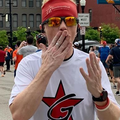 Shortly before Jon's passing, he and his wife had signed up for the Mini Marathon in Indianapolis. Three years prior, they had run the same race, where Jon surprised Amy with a proposal at the finish line. Not wanting her to go it alone this time, at Jon's memorial service, one of his sisters started recruiting people to run with Amy. The team of runners & walkers chose the name Jonnie's Goodguys, taking inspiration from a favorite college T-shirt of Jon's.